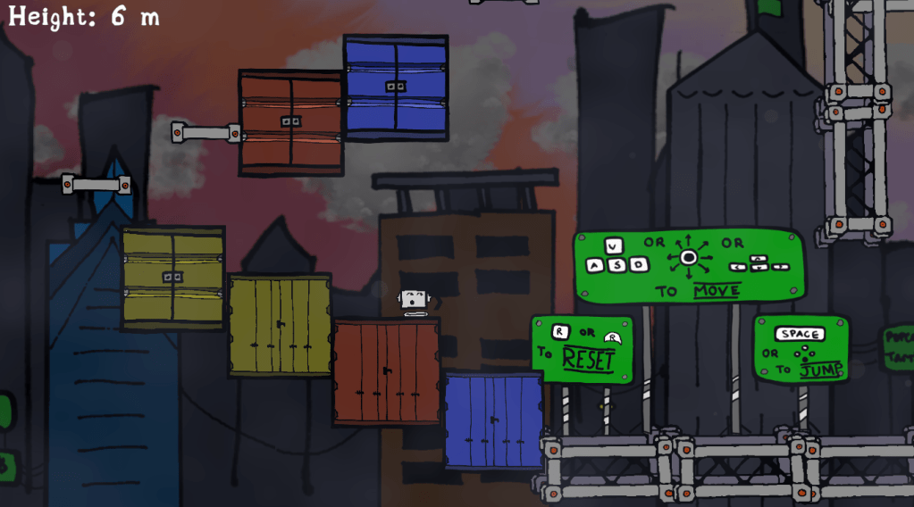 - Excelsior, a cute & short platformer with hand-drawn art about building and upgrading a robot to help him climb! (Blog post). Check this game out if you are interested in my creative skills.
